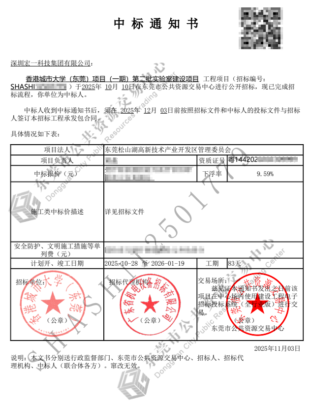 克日,,深圳新金宝科技集团依附精彩的手艺计划和富厚的行业履历,,乐成中标香港都会大学(东莞)项目(一期)第二批实验室建设项目,,这标记着新金宝科技在教育科研设施建设领域再添一项主要业绩!